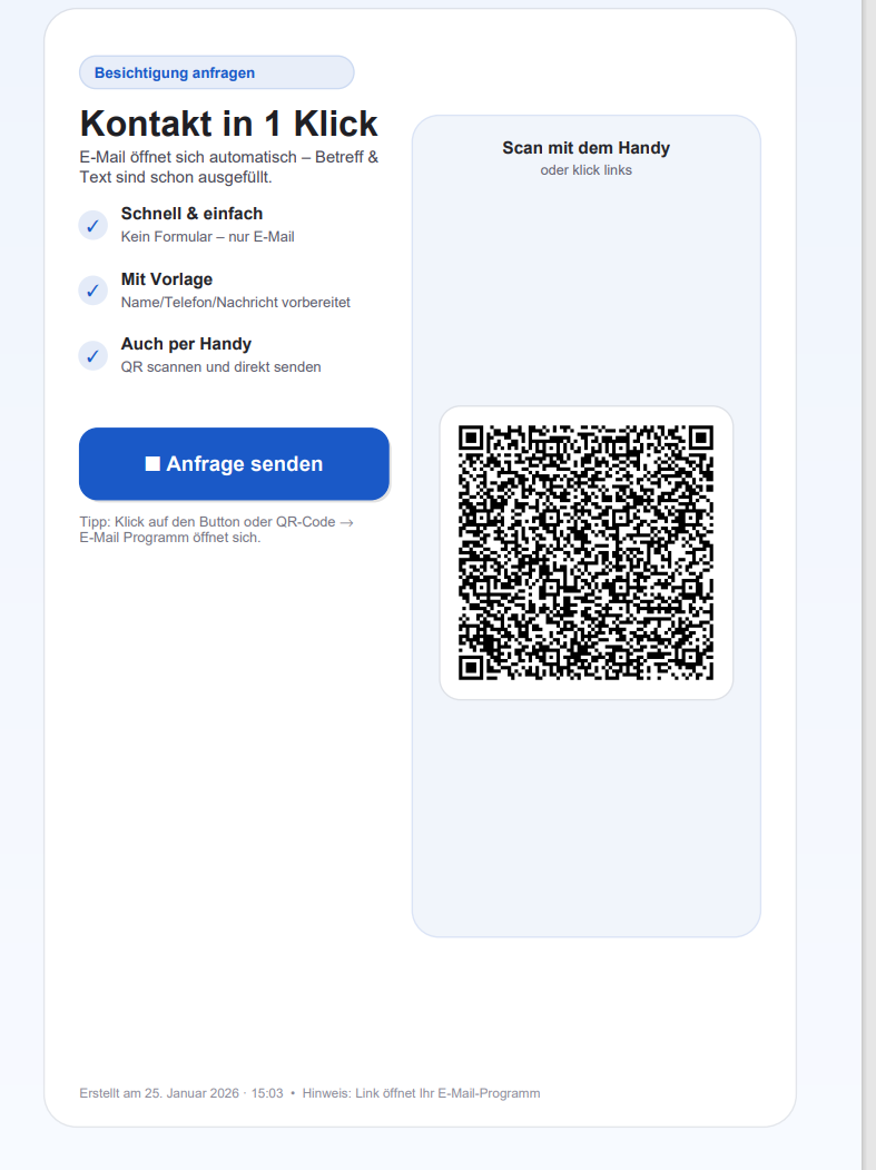 Aktuell versuchen Betrüger verstärkt, die Kommunikation von ImmoScout24 wegzuführen. Sie platzieren QR-Codes in hochgeladenen PDF-Dateien, betten Kontaktdaten in Bilder ein oder fordern explizit zur Kontaktaufnahme per E-Mail oder WhatsApp auf.